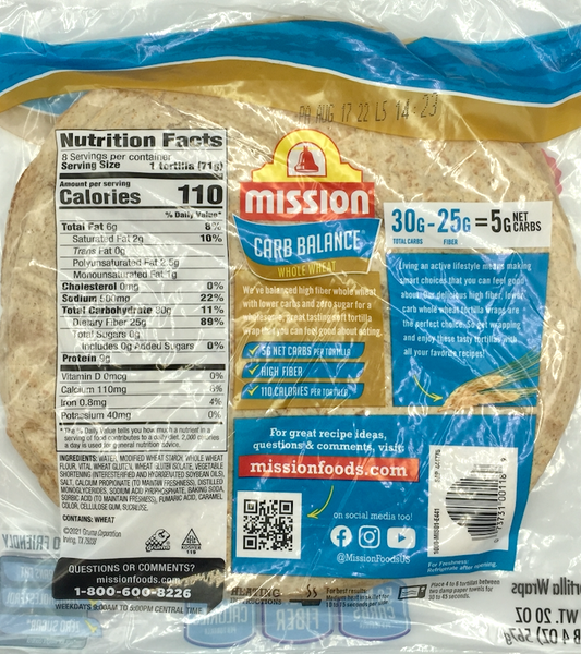 미션 Mission 카브발란스 홀휘트 (통밀) 부리토 70g 8ct (567g) *케토친화*