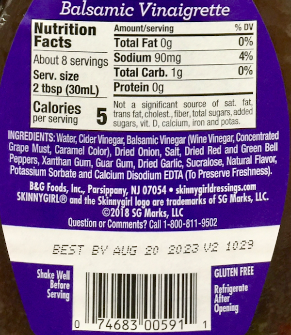 스키니걸 Skinnygirl 슈가/글루텐-프리 무지방 5칼로리 발사믹 비네그레트 드레싱 237ml