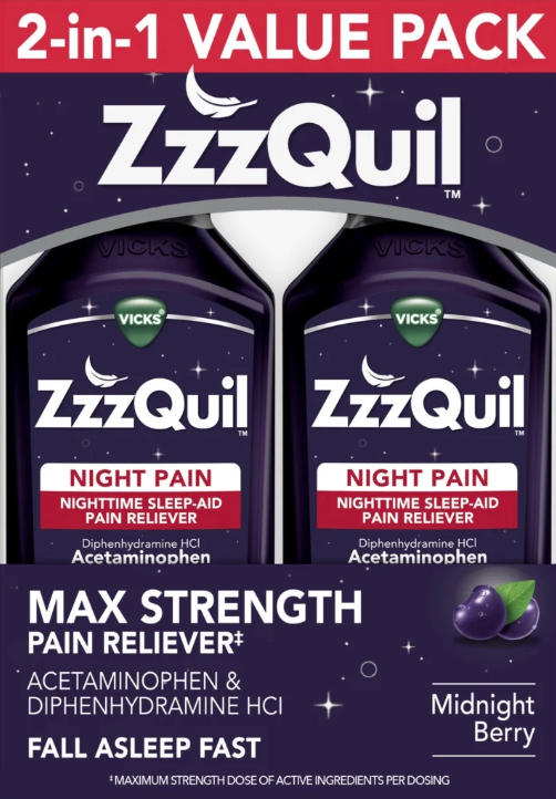 P&G 지퀼 나이트페인 디펜하이드라민 50mg + 아세트아미노펜 수면유도 진통제 시럽 354ml 2병