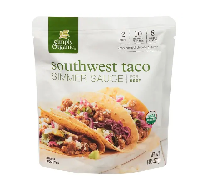 심플리 오가닉 Simply Organic 유기농 소스 믹스 - 싸우스 웨스트 타코 227g 4개