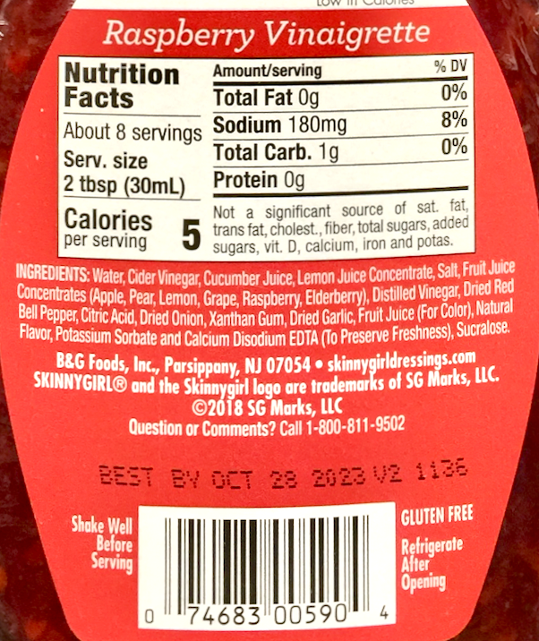 스키니걸 Skinnygirl 슈가/글루텐-프리 무지방 5칼로리 라즈베리 비네그레트 드레싱 237ml