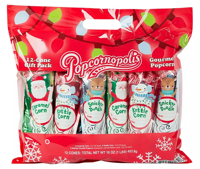 - 사랑스러운 홀리데이 아트워크 포장지에 포장된 12개의 맛있는 팝콘이 제공됩니다