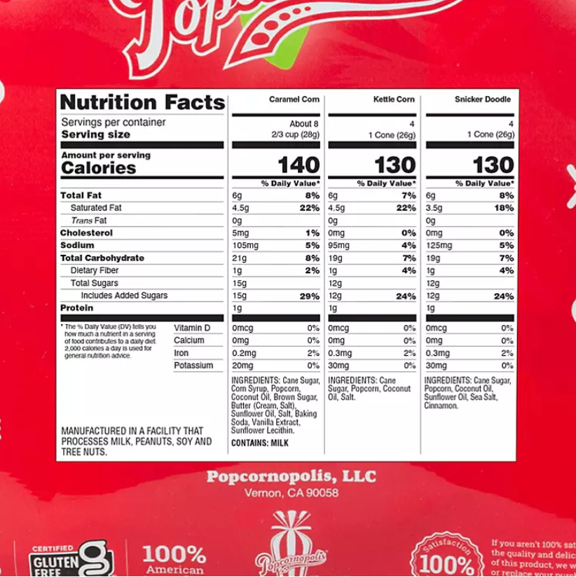 - 미국 중서부에서 재배한 유전자 변형 농산물 없는 (Non-GMO) 옥수수를 코코넛 오일에 바삭하게 튀겨 모두가 좋아하는 풍미를 선사합니다