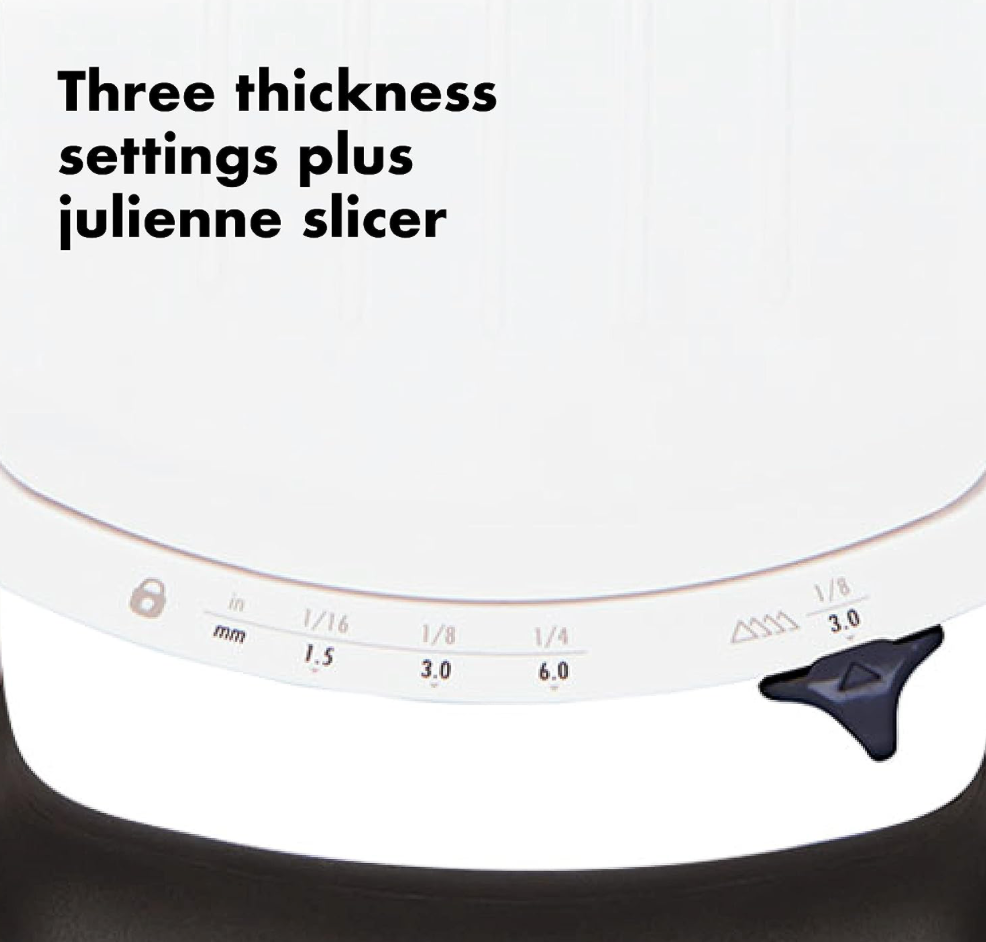 • 3단계 굵기로 빠르게 야채를 슬라이스하거나 채를 칠수 있습니다