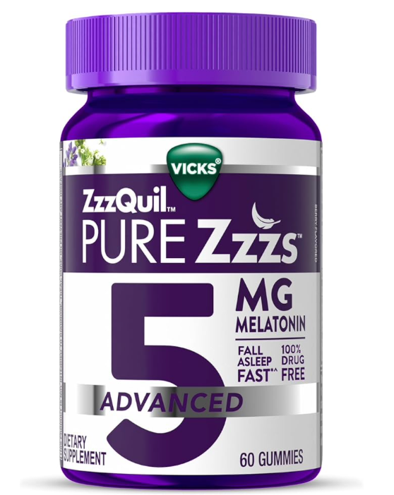 P&G 지퀼 퓨어지스 어드밴스드 약물-프리 멜라토닌 5mg 수면유도 젤라틴-프리 거미 60정