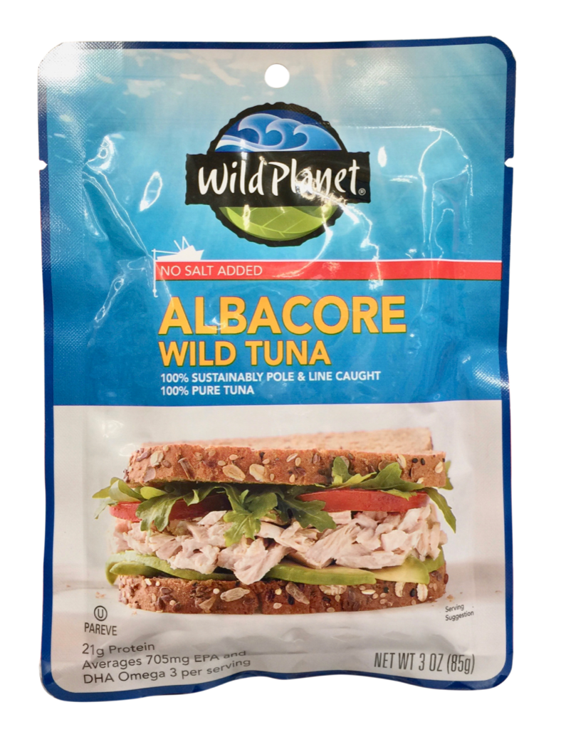 와일드플래닛 Wild Planet Non-GMO BPA/방부제-프리 무염 알바코어 참치 파우치 85g 6ct (510g)