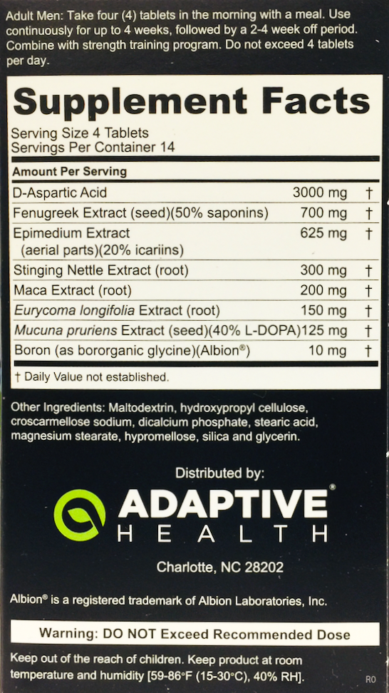 • 강력한 남성 테스토스테론 복합체로, 유리 테스토스테론 수치를 높이고 근육량을 극대화하며 운동 능력을 향상시키는 데 도움을 줍니다