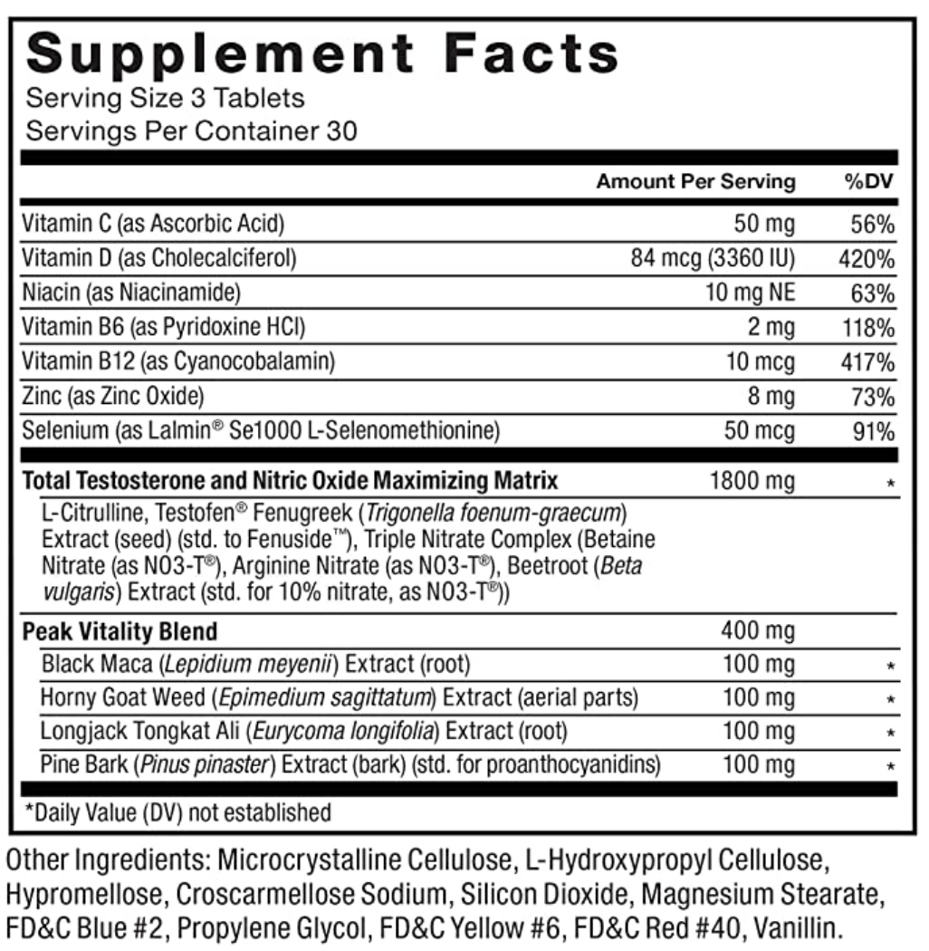 - 활력을 증진시키고, 기분을 좋게 하고, 근육 기능을 지원하고, 운동 지구력을 향상시키는 최고 등급의 테스토스테론 지원 포뮬러로, 전통적으로 테스토스테론 생성을 촉진하는 데 사용되어 온 성분을 사용합니다