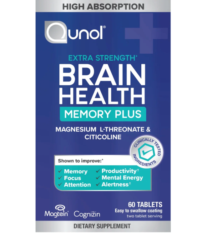 큐놀 브레인헬스 메모리 플러스 고흡수율 카페인/약물-프리 기억력•주의력 향상 60정 (30일)