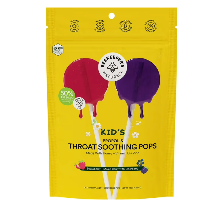 - 프로폴리스, 비타민 D, 아연, 야생화 꿀이 세심하게 배합되어 있으며 기존 롤리팝 사탕보다 설탕을 50% 적게 함유해 과도한 설탕 섭취 걱정 없이 아이들이 맛있게 즐길 수 있습니다